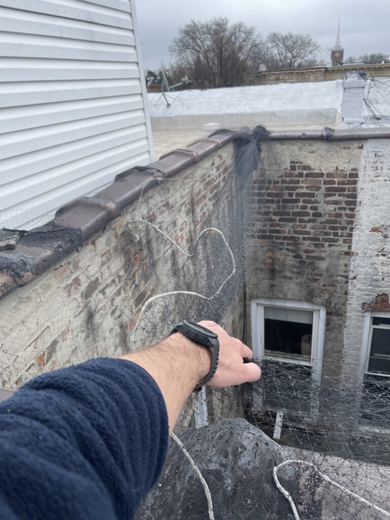 I went to the roof and remove the mesh so he has a wide open space to fly out.